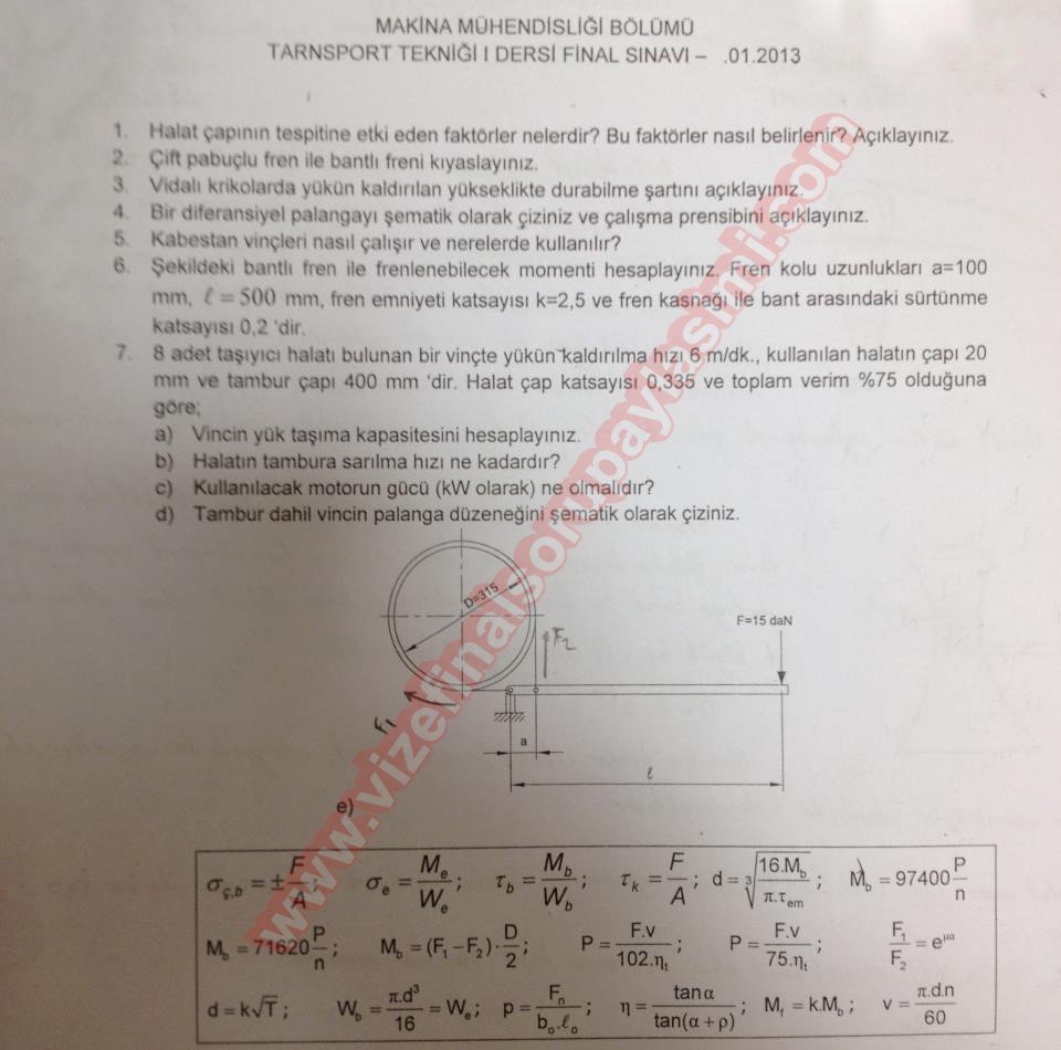 Transport Tekniği Dersi Vize Soruları - 2014 7-01-2015, 05:36