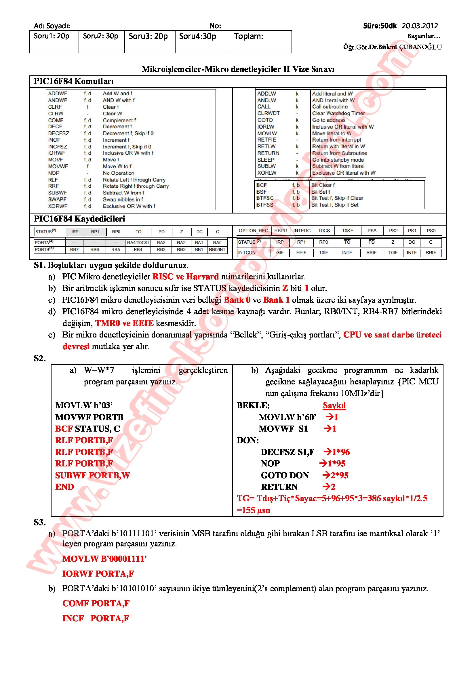 Mikroişlemciler-2 Vize Soruları Ve Cevapları - 20.03.2012