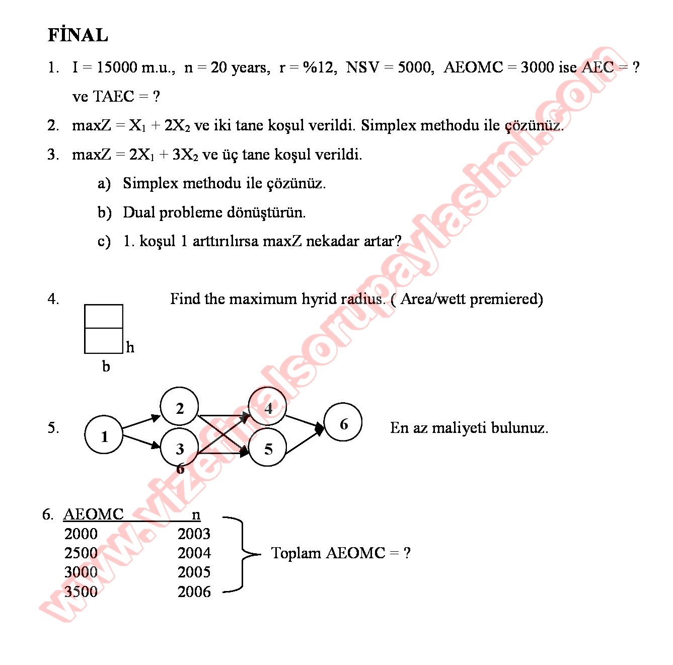 Vize ve Final Soruları / Kocaeli Üniversitesi / Çevre Sistemleri Analizi Dersi