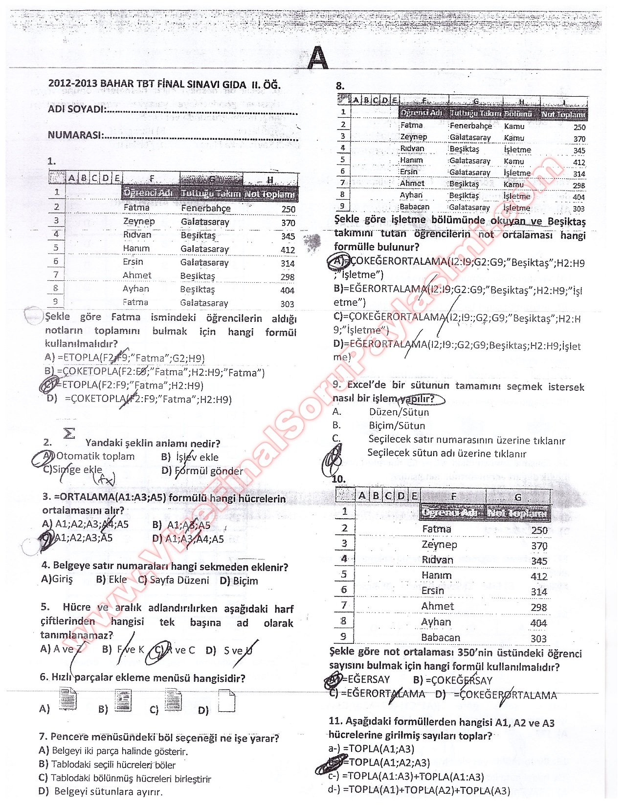 Temel Bilgi Teknolojileri Vize Soruları 2012