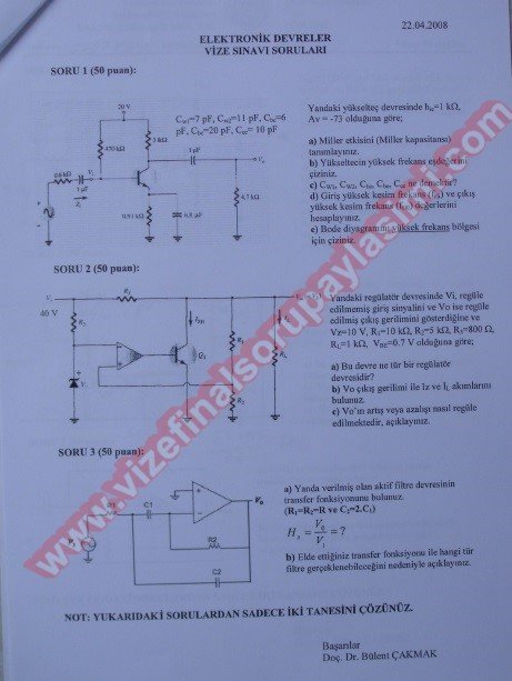 Vize ve Final Soruları / Erzurum Atatürk Üniversitesi / Elektronik Devreler Dersi