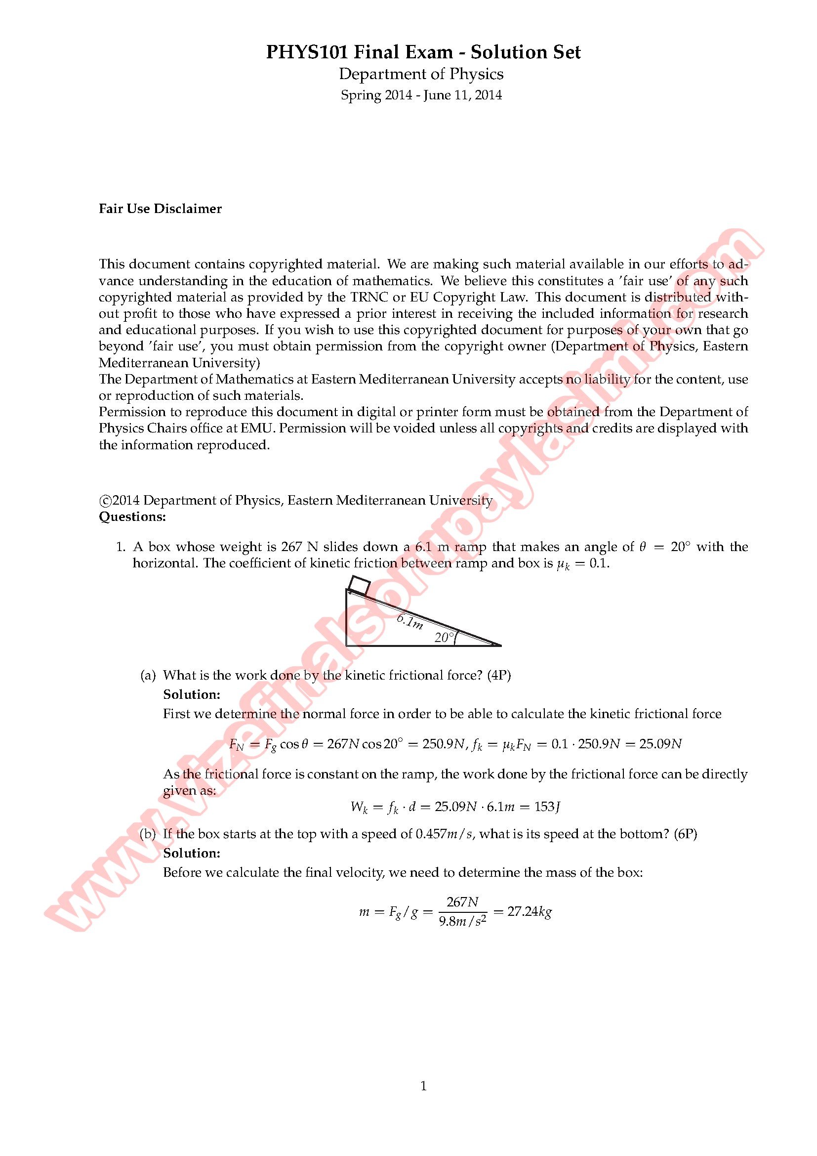 Vize ve Final Soruları / Doğu Akdeniz Üniversitesi / Fizik -1