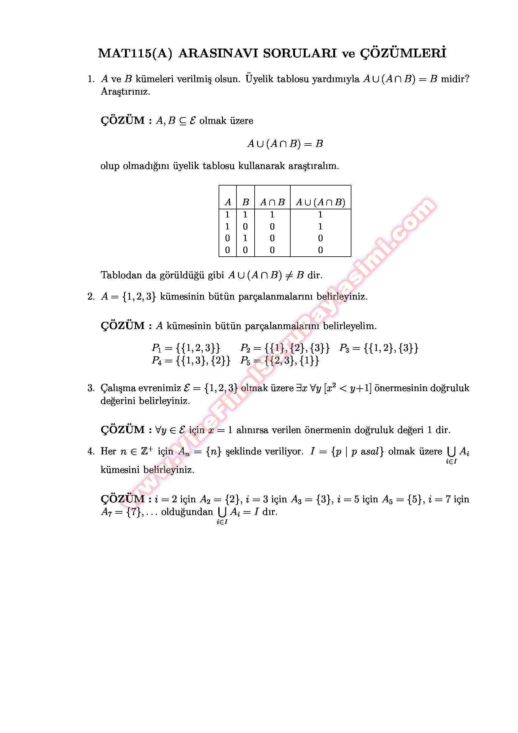 Vize ve Final Soruları / Ankara Üniversitesi / Soyut Matematik 1
