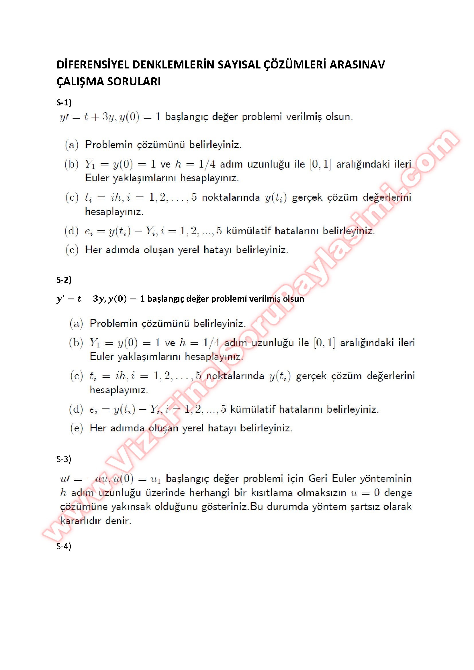 Vize ve Final Soruları / Gümüşhane Üniversitesi / Diferansiyel Denklemleri Sayısal Çözümleri Dersi