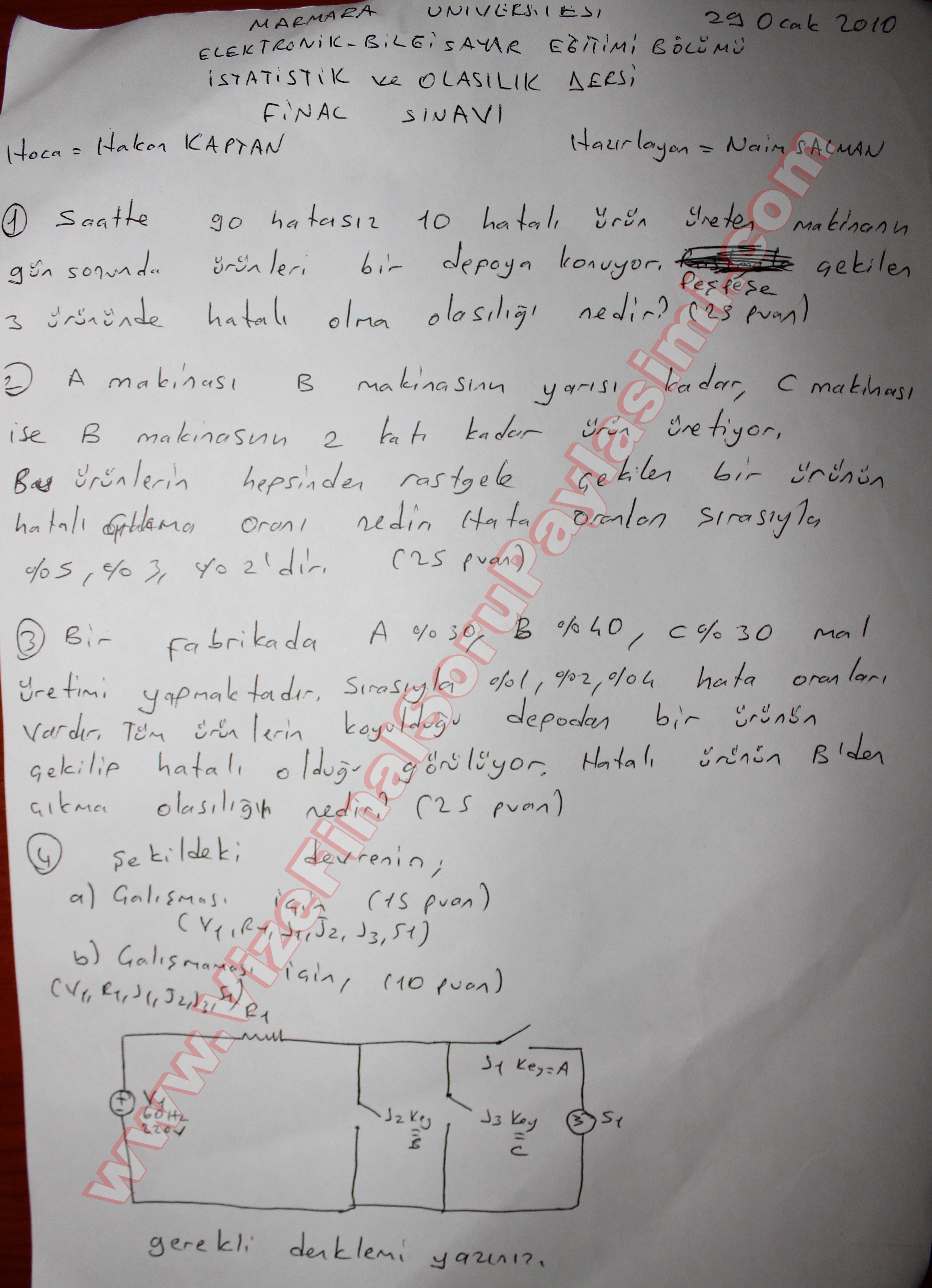 Olasılık Ve İstatistik Final Soruları-2011 16-12-2014, 21:45