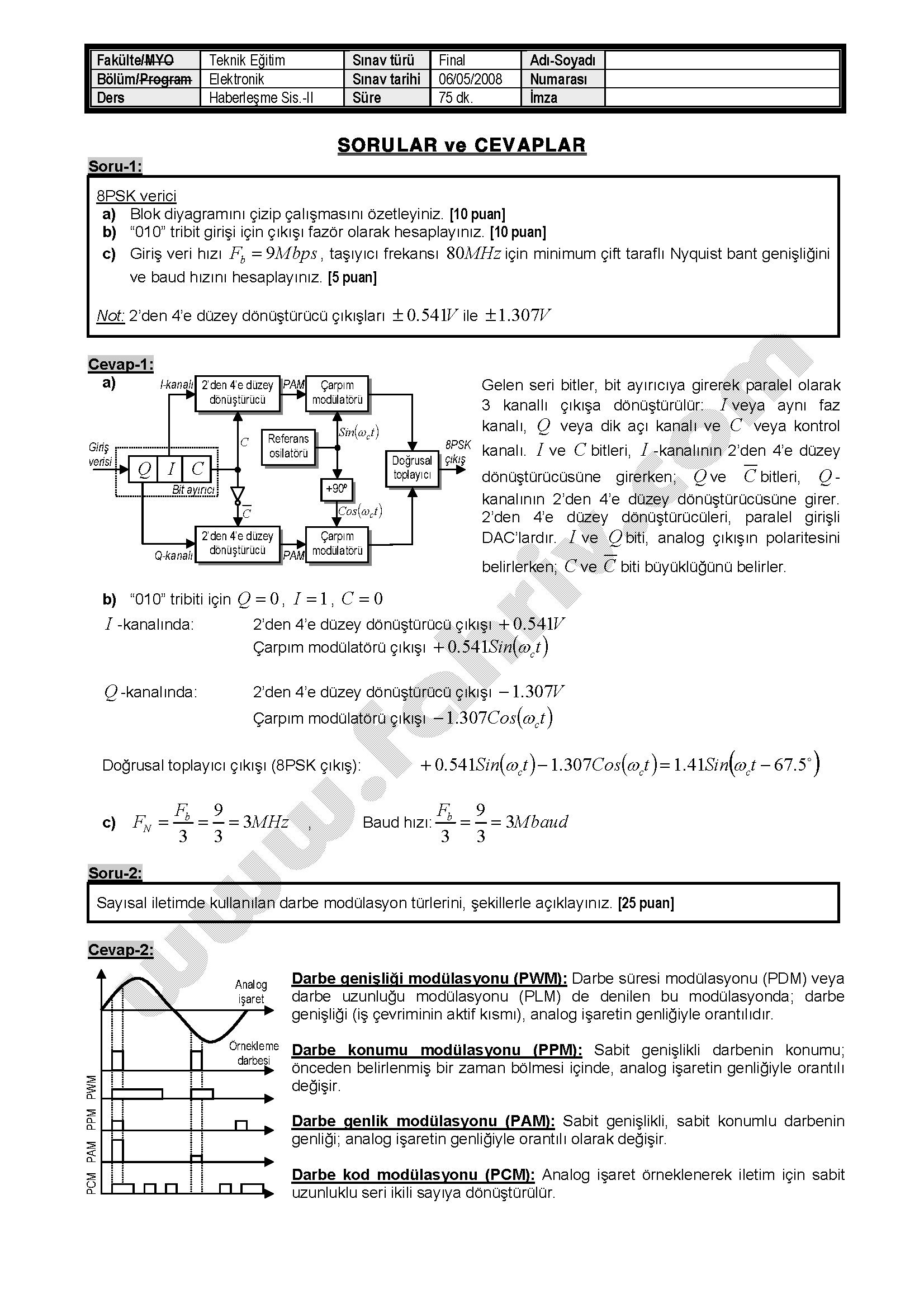 Haberleşme Sistemleri-2 Final Soruları Ve Cevapları