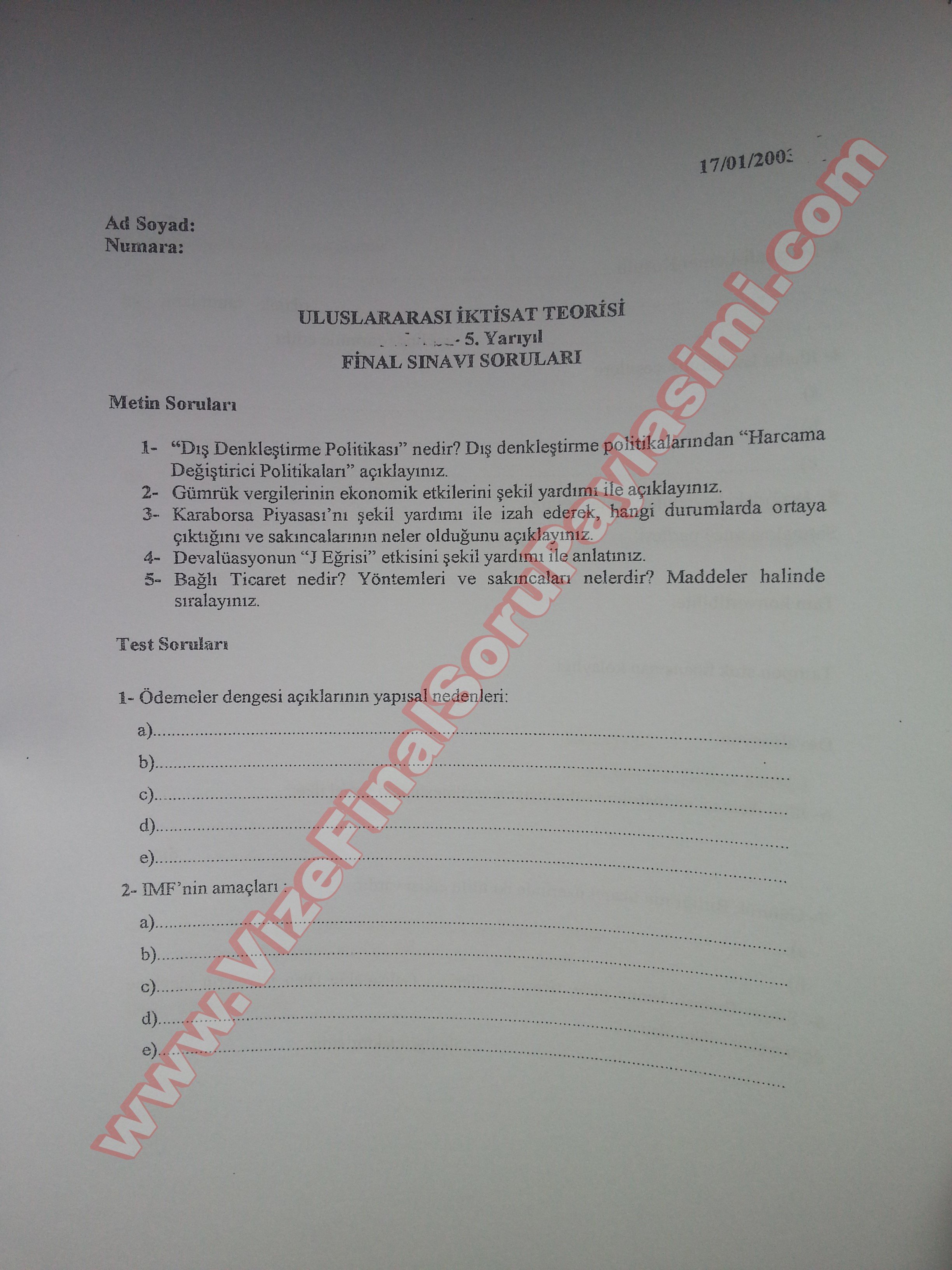 Vize ve Final Soruları / İstanbul Üniversitesi / Uluslar Arası İktisat Teorisi Dersi