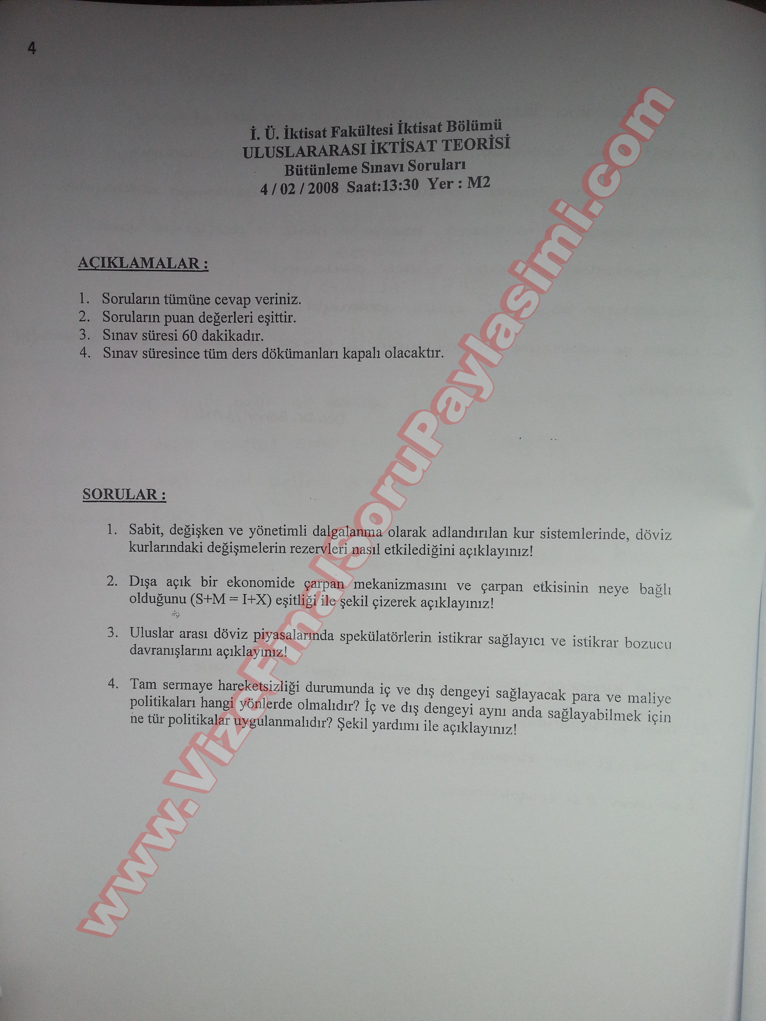 Vize ve Final Soruları / İstanbul Üniversitesi / Uluslar Arası İktisat Teorisi Dersi
