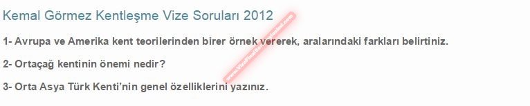 Vize ve Final Soruları / Gazi Üniversitesi / Kentleşme Dersi
