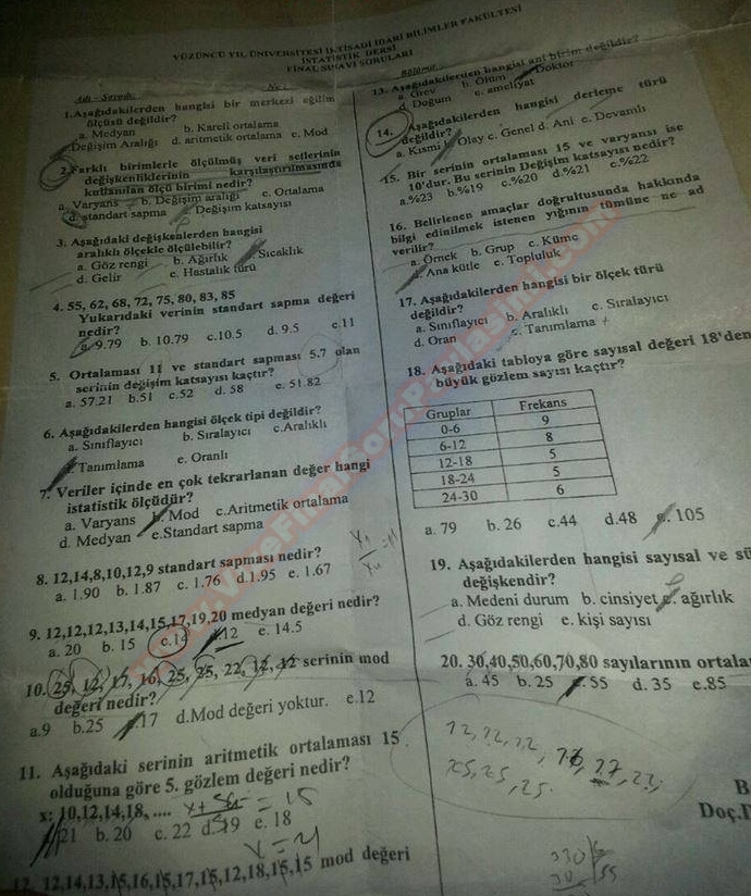 Vize ve Final Soruları / Yüzüncü Yıl Üniversitesi / İstatistik Dersi