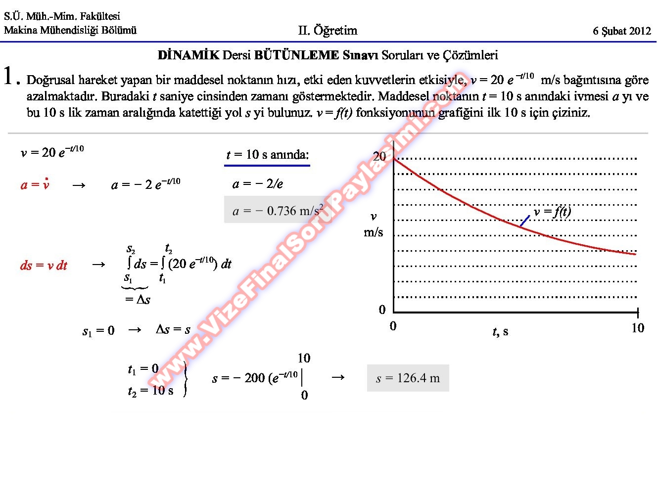Vize ve Final Soruları / Selçuk Üniversitesi / Dinamik Dersi