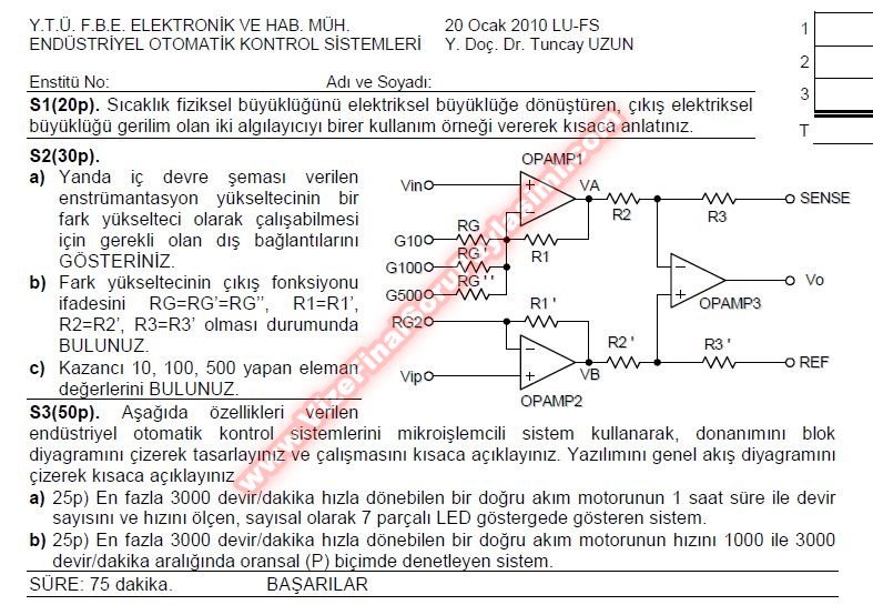 Vize ve Final Soruları / Yıldız Teknik Üniversitesi / Endüstriyel Otomatik Kontrol Sistemleri Dersi