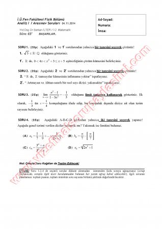 Kategori: Vize ve Final Soruları / İstanbul Üniversitesi / Analiz -1 Dersi