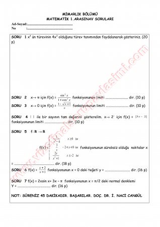 Kategori: Vize ve Final Soruları / Uludağ Üniversitesi / Matematik -1