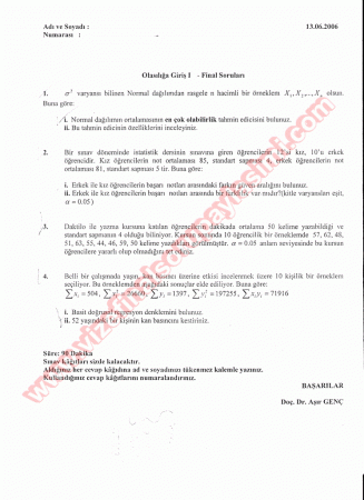 Kategori: Vize ve Final Soruları / Selçuk Üniversitesi / Olasılığa Giriş-1