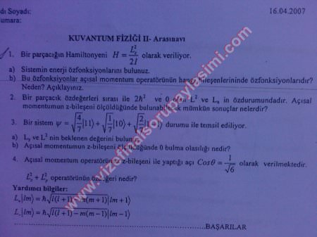 Kategori: Vize ve Final Soruları / İstanbul Üniversitesi / Kuantum Fiziği -2