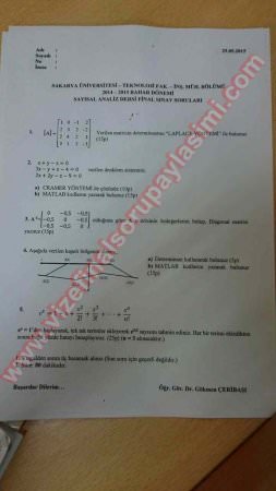 Kategori: Vize ve Final Soruları / Sakarya Üniversitesi / Sayısal Analiz Dersi