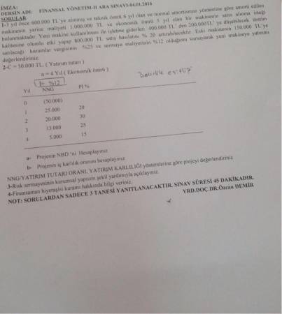 Kategori: Vize ve Final Soruları / Fırat Üniversitesi / Finansal Yönetim Dersi