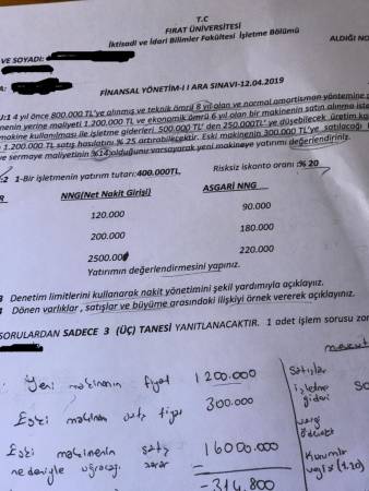 Kategori: Vize ve Final Soruları / Fırat Üniversitesi / Finansal Yönetim Dersi