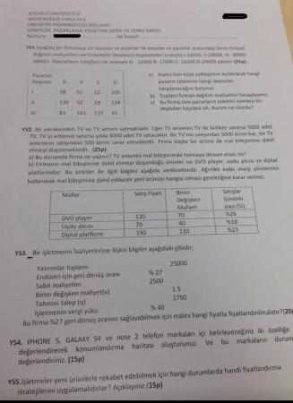 Kategori: Vize ve Final Soruları / Kocaeli Üniversitesi / Stratejik Pazarlama Yönetimi Dersi