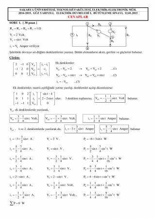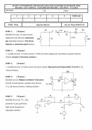 Kategori: Vize ve Final Soruları / Sakarya Üniversitesi / Elektrik Devreleri-1