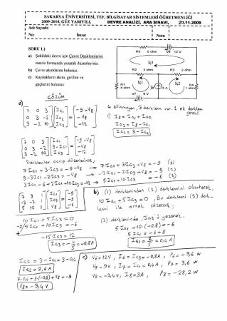 Kategori: Vize ve Final Soruları / Sakarya Üniversitesi / Elektrik Devreleri-1