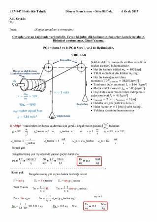 Kategori: Vize ve Final Soruları / Sakarya Üniversitesi / Elektrikle Tahrik Dersi