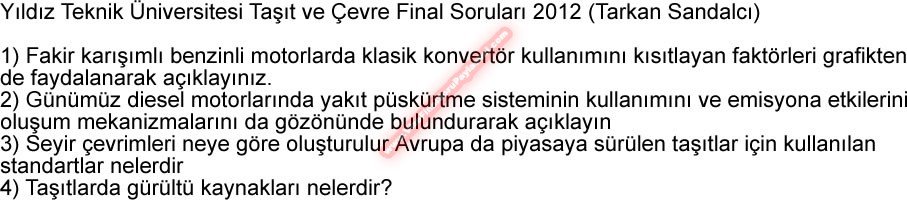 Vize ve Final Soruları / Yıldız Teknik Üniversitesi / Taşıt ve Çevre Dersi