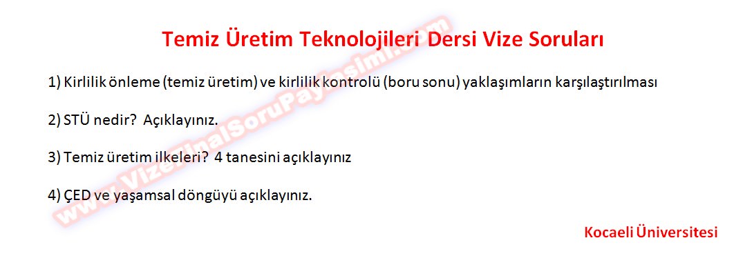 Vize ve Final Soruları / Kocaeli Üniversitesi / Temiz Üretim Teknolojileri Dersi