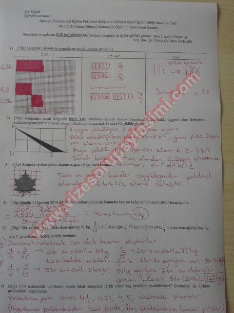 Vize ve Final Soruları / Sakarya Üniversitesi / Matematik Öğretimi