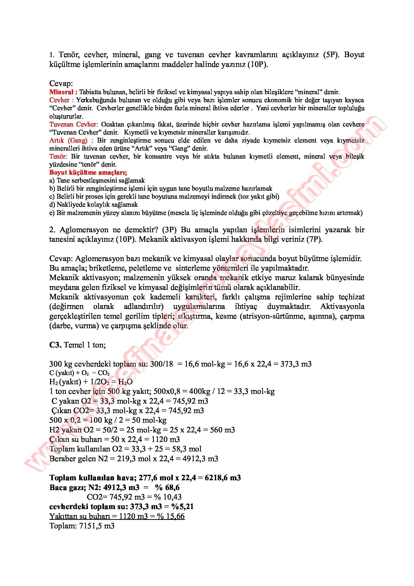Vize ve Final Soruları / Sakarya Üniversitesi / Ekstraktif Metalurji Prensibleri