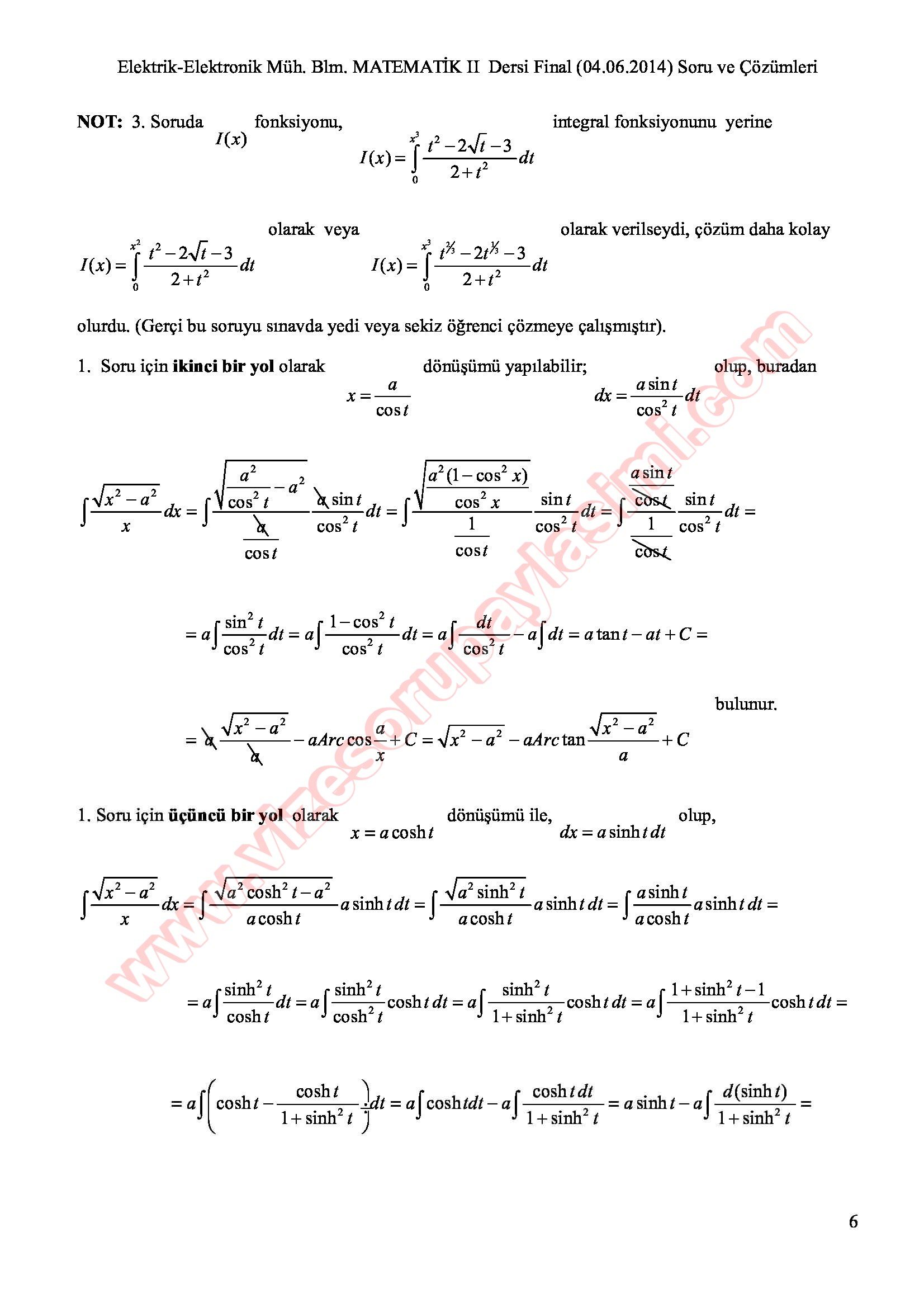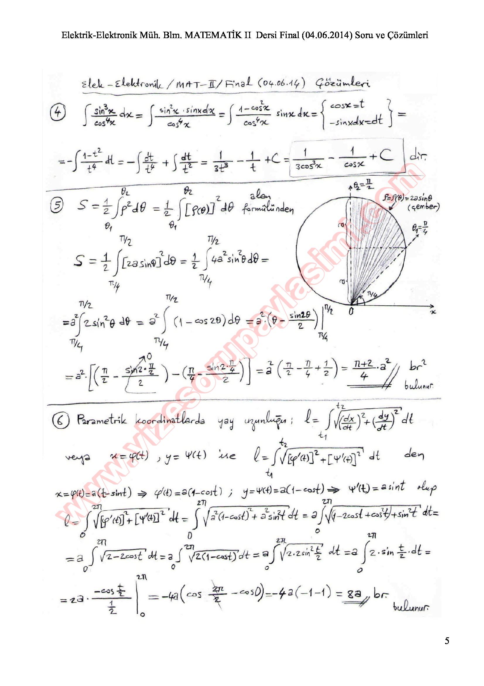 Matematik-2 Final Soruları Ve Cevapları - 04.06.2014