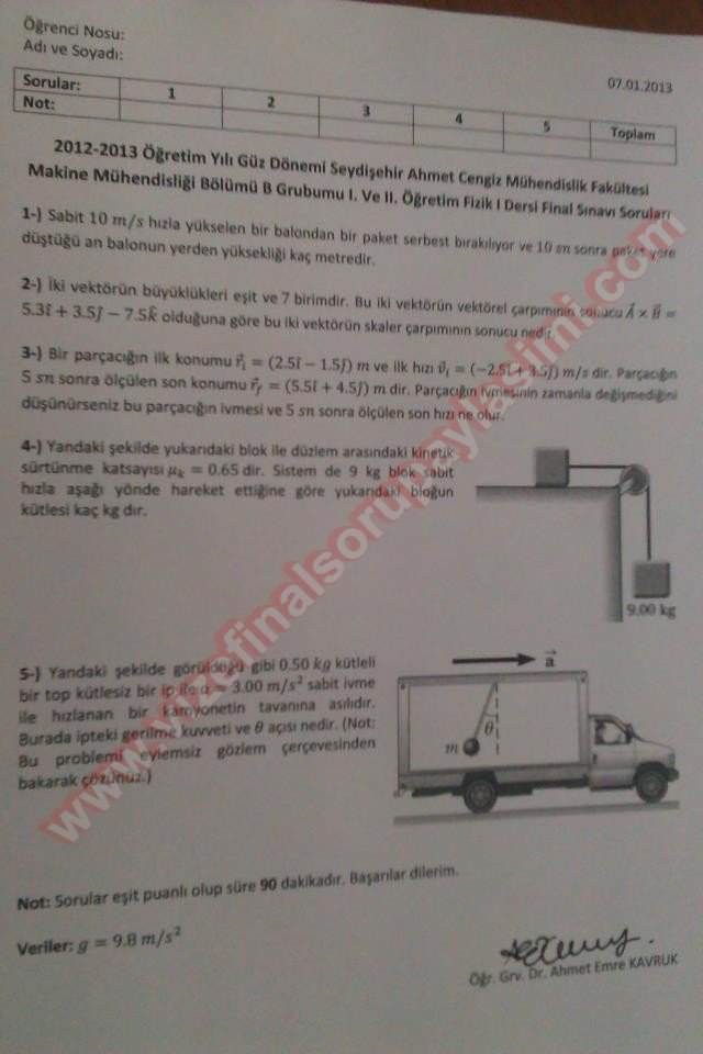 Fizik Dersi Final Soruları - 2013 13-10-2014, 21:42