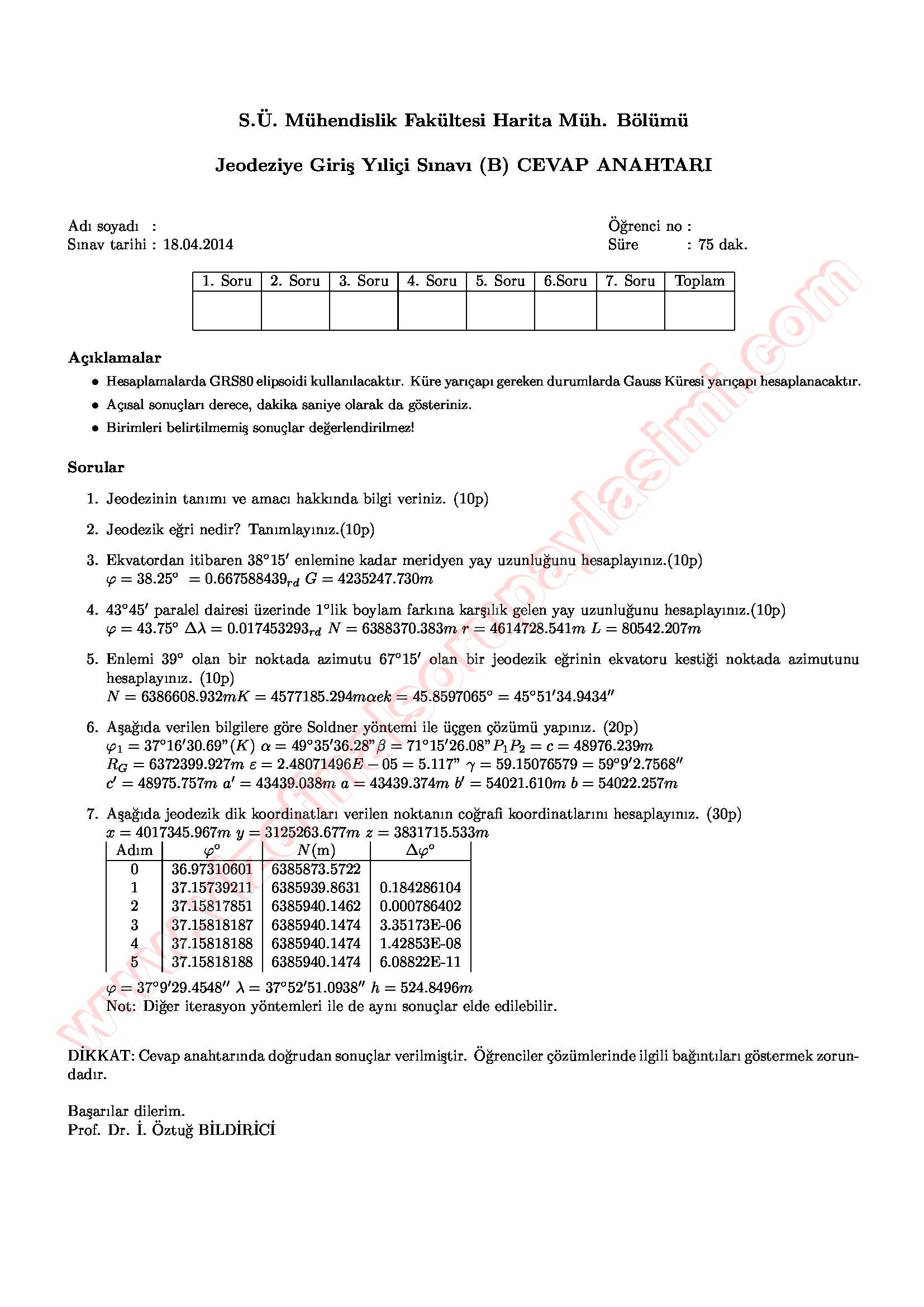Vize ve Final Soruları / Selçuk Üniversitesi / Jeodeziye Giriş