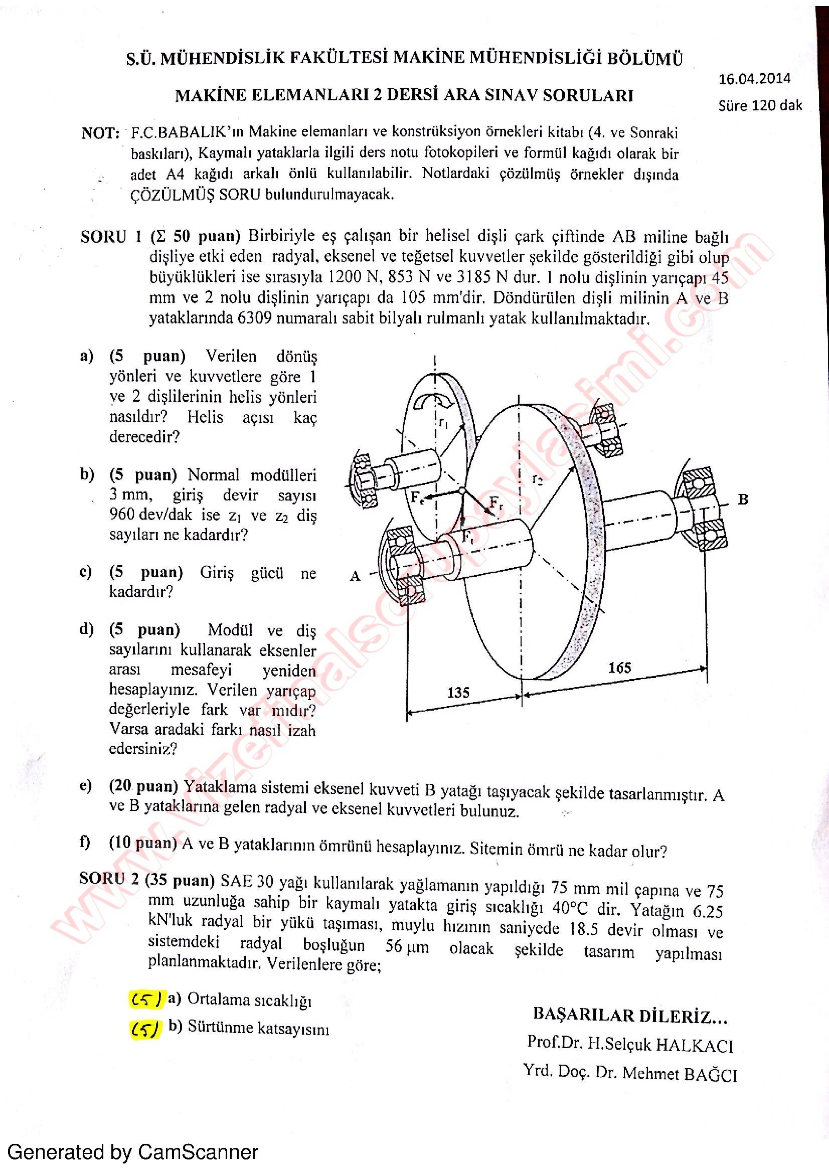 Makina Elemanları -2 Vize Soruları Ve Cevapları - 16.04.2014
