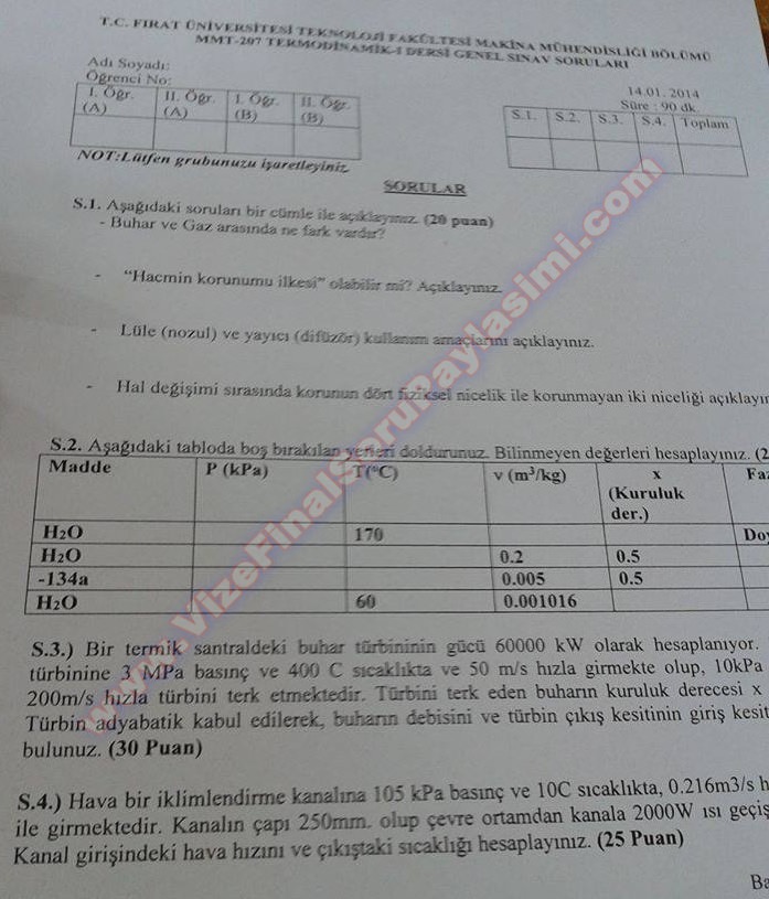 Fırat Üniversitesi Termodinamik-1 Final Soruları 17-07-2014, 16:39