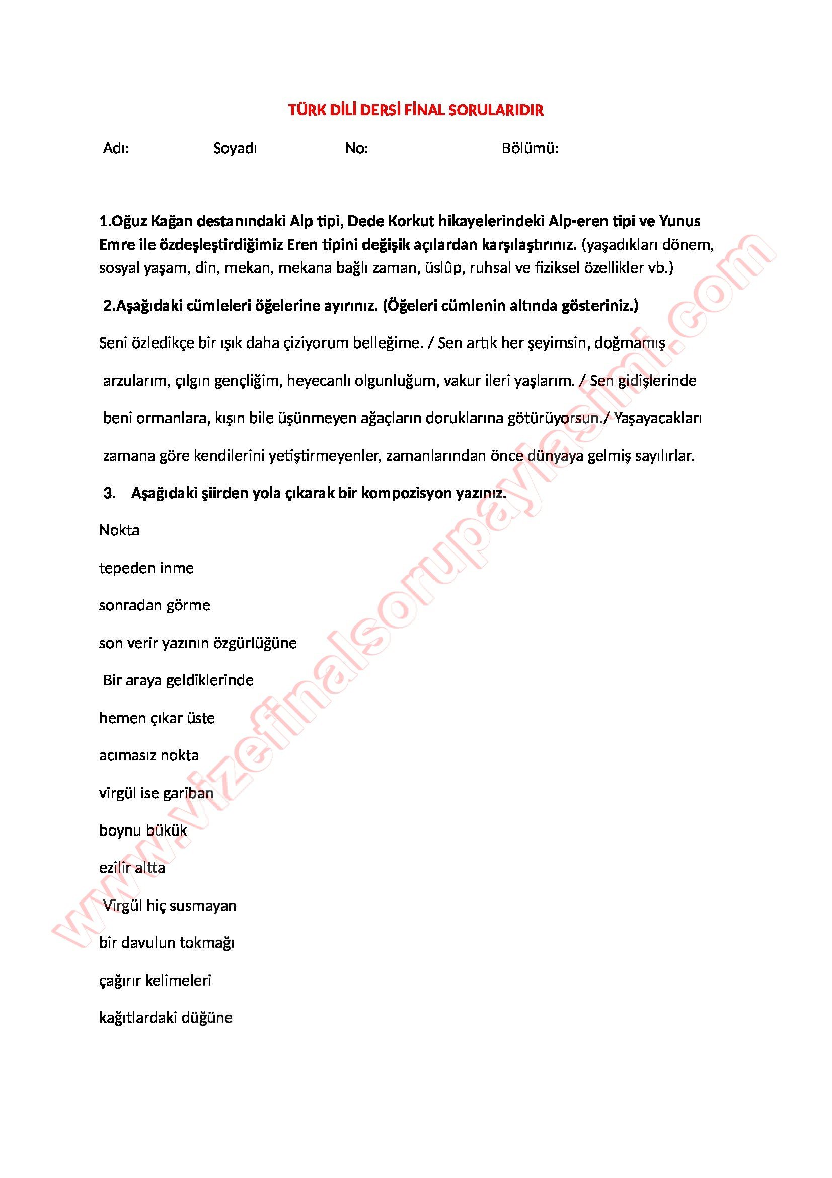 Türk Dili-1 Final Soruları 18-01-2015, 01:18