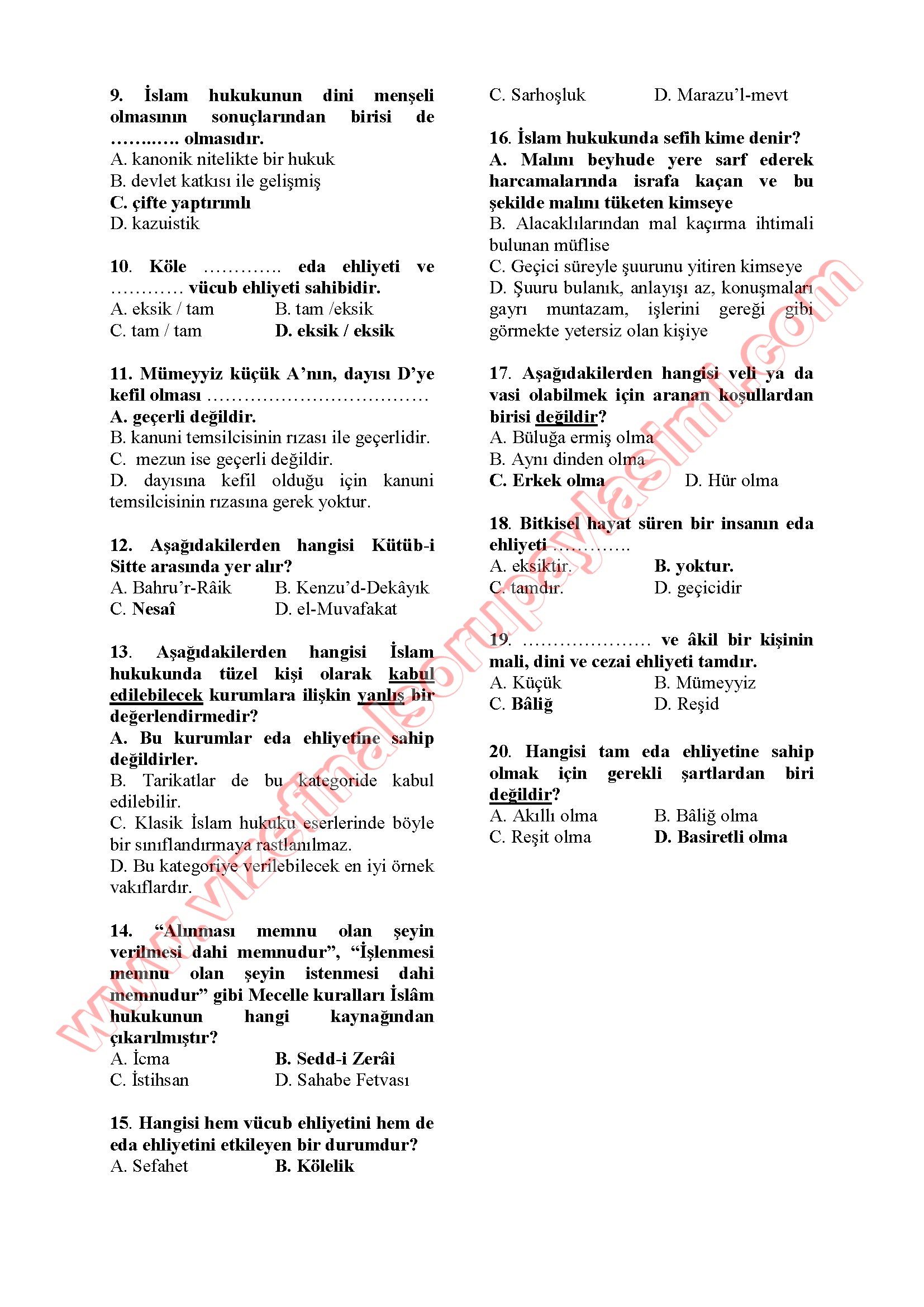 İslam Tarihi-1 Final Soruları - 02.02.2015