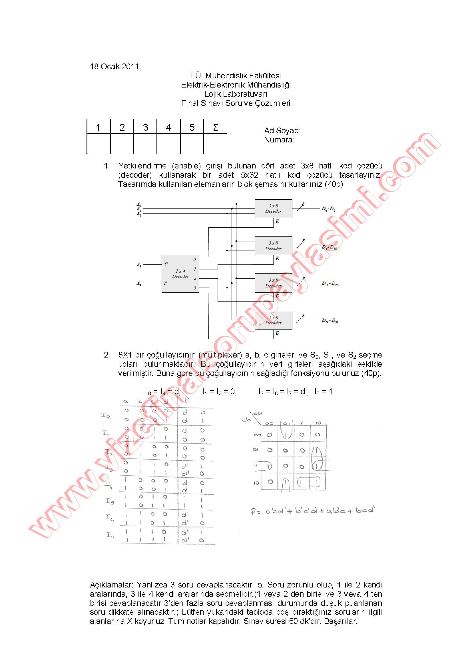 Lojik Laboratuvarı Final Soruları Ve Cevapları - 18.01.2011