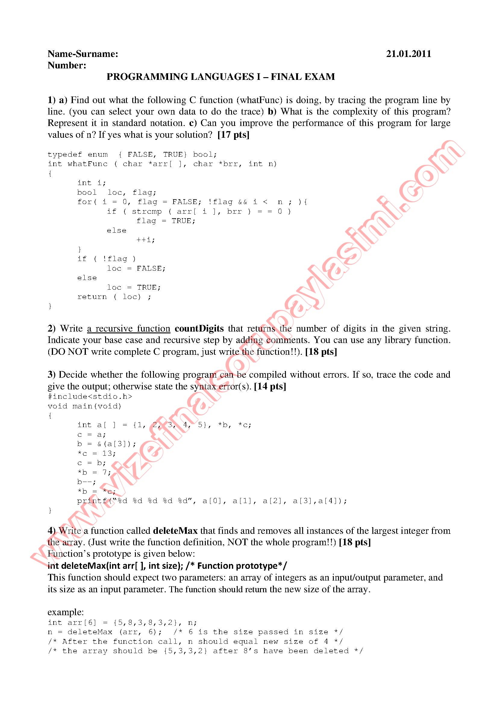 Programlama Dilleri-1 Final Soruları Ve Cevapları - 21.01.2011