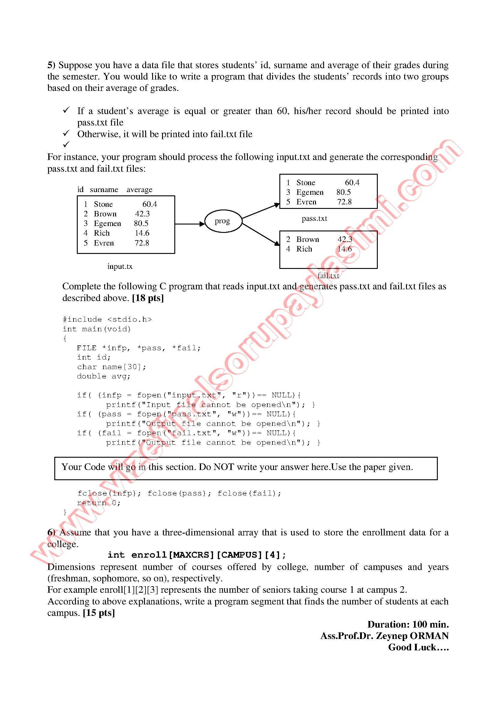 Vize ve Final Soruları / İstanbul Üniversitesi / Programlama Dilleri-1