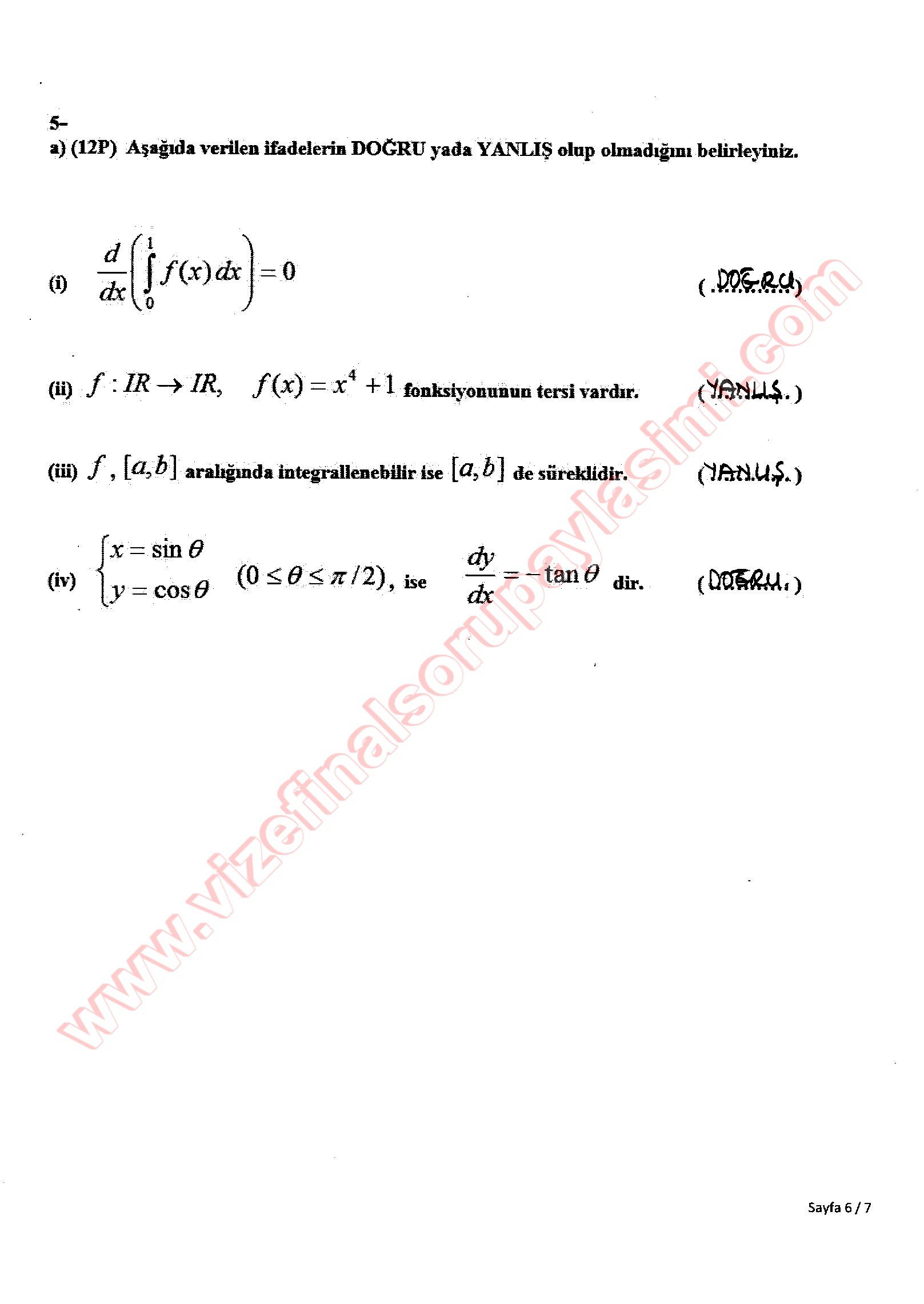 Vize ve Final Soruları / Trakya Üniversitesi / Matematik -1
