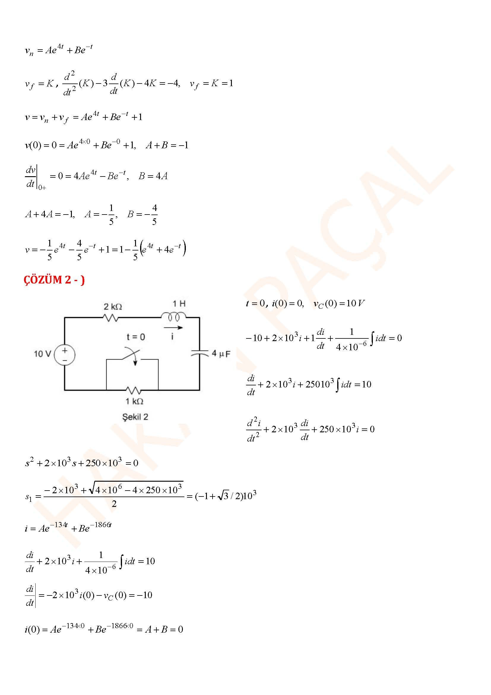 Vize ve Final Soruları / Sakarya Üniversitesi / Elektrik Devreleri-1