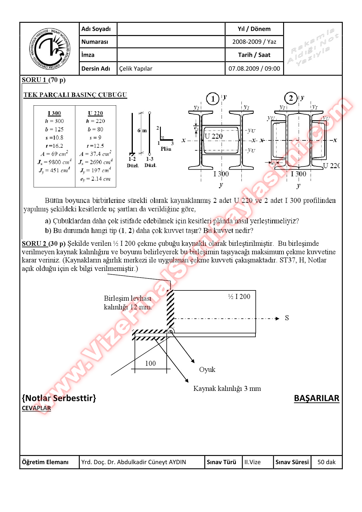 Çelik Yapılar Yaz Okulu Vize1 Soruları - 2008 14-05-2015, 17:25