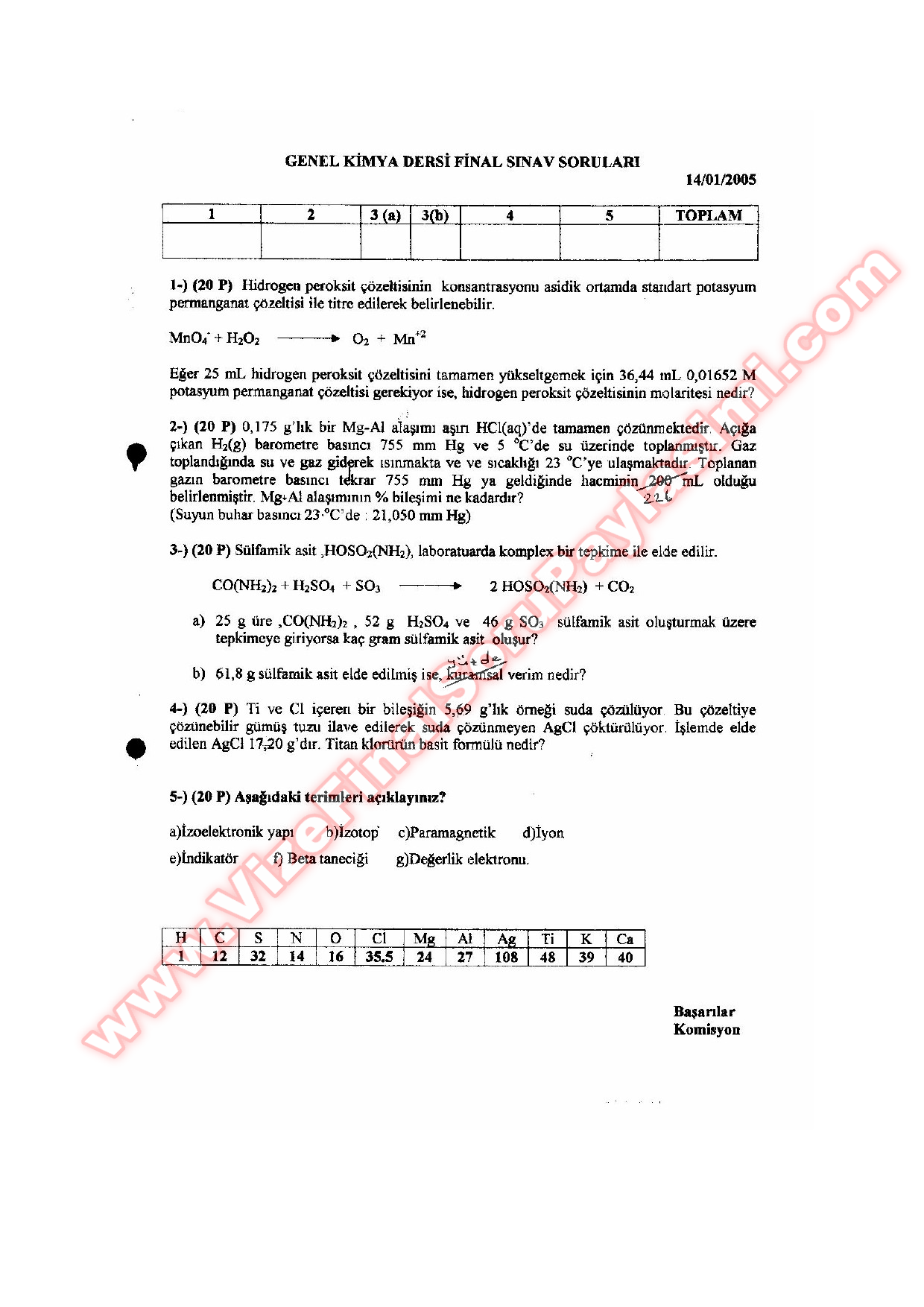 Genel Kimya Dersi Final Soruları - 2014 8-01-2015, 15:27