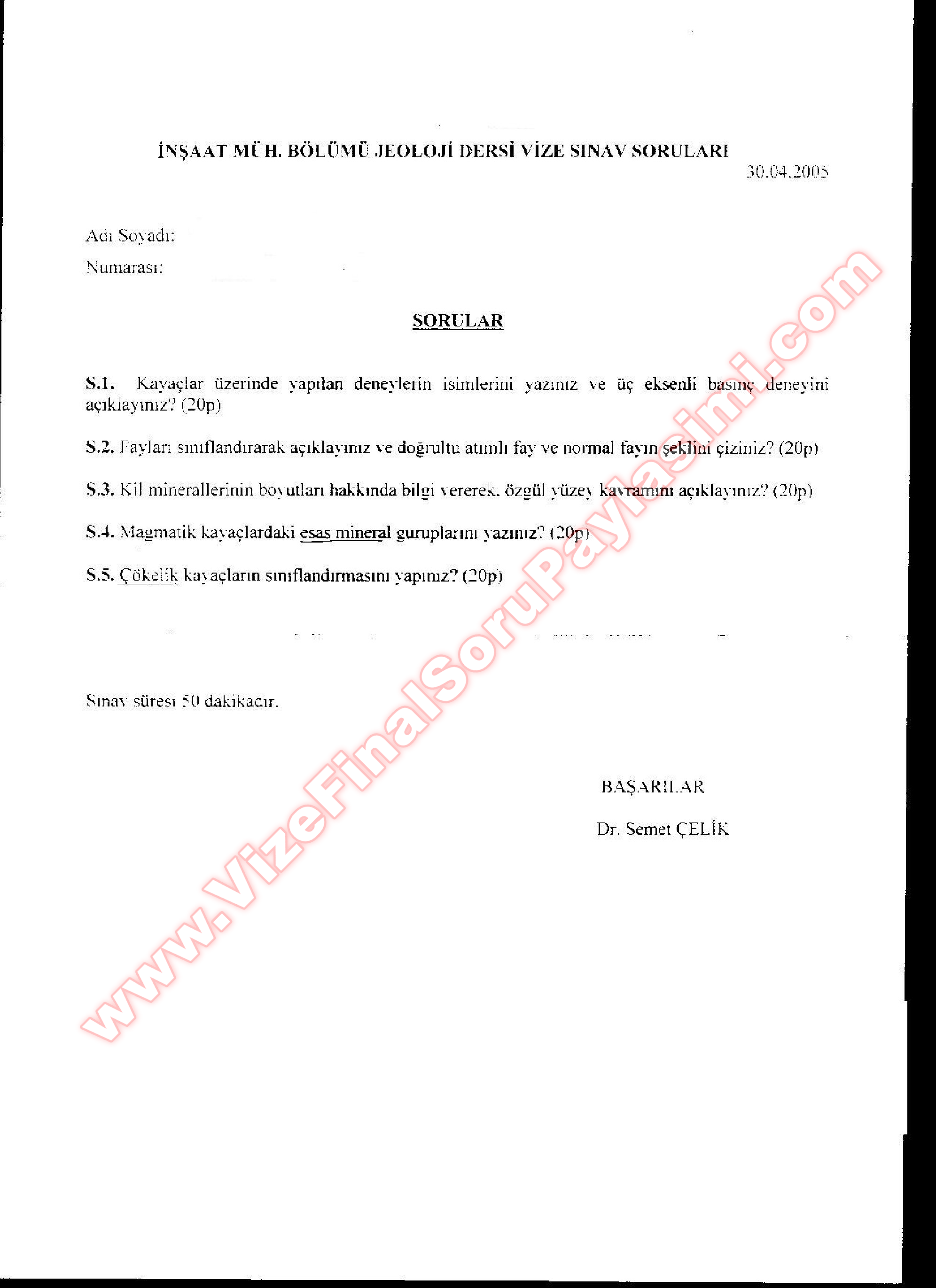 Jeoloji Final Soruları -2005 14-05-2015, 18:41