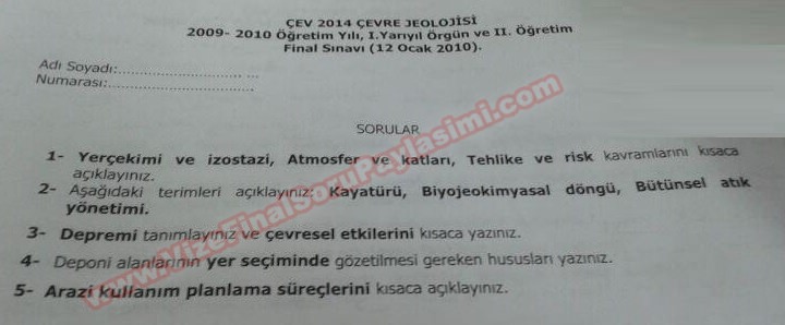 Çevre Jeolojisi Dersi Vize ve Final Soruları 3-12-2014, 18:53