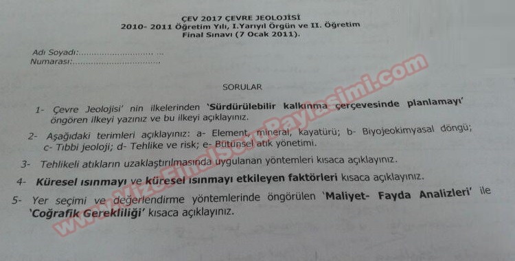 Çevre Jeolojisi Dersi Vize ve Final Soruları 3-12-2014, 18:53