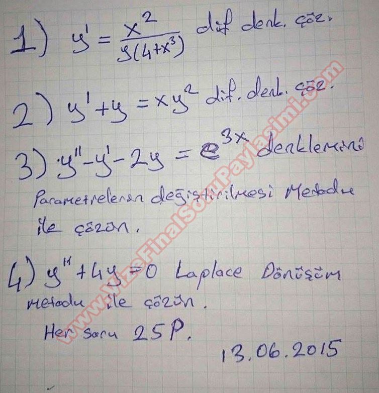 muhendislik matematigi diferansiyel denklemler final sorulari firat
