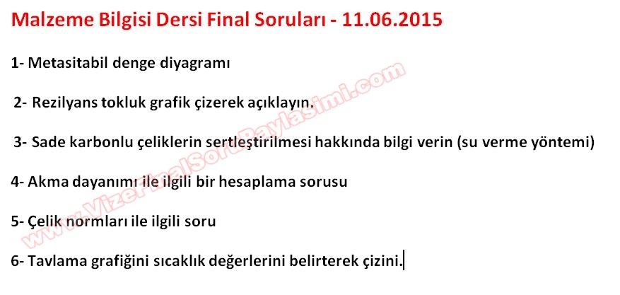 Malzeme Bilgisi Dersi Final Soruları 5-06-2014, 04:46